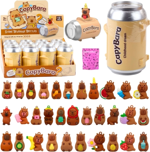 Descoperă o surpriză adorabilă: capibara în conservă ascunde o figurină aleatorie pe breloc și cărți de colecție. Ambalajul tip conservă, compact, îi va încânta atât pe copii, cât și pe colecționari; grozav ca cadou sau accesoriu stilat pentru chei, rucsac ori penar.