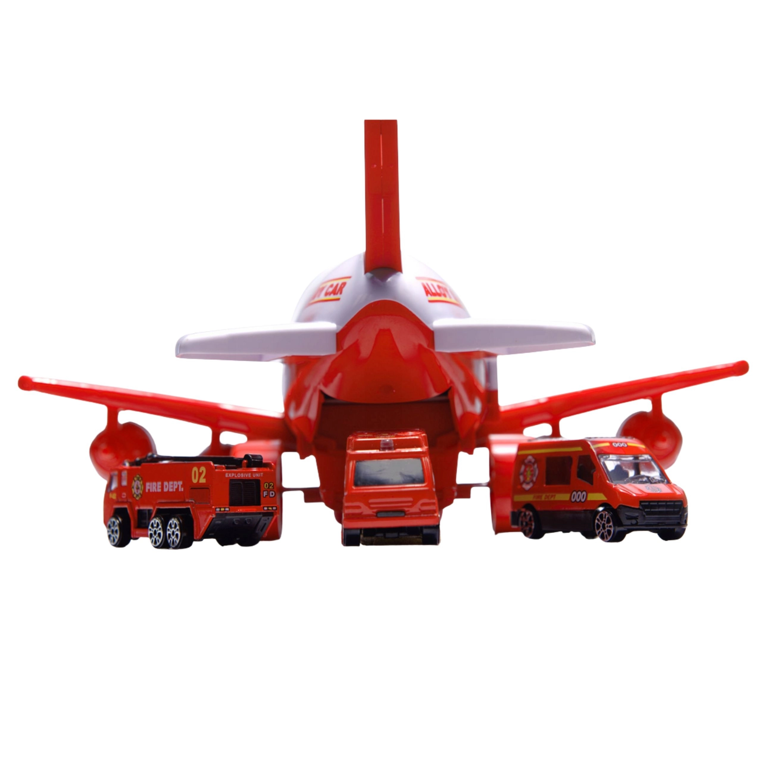 Treziți imaginația copiilor cu avionul de pompieri WOOPIE, care funcționează ca un transportor practic pentru mini vehicule. Fuselajul și ușile laterale deschizibile permit desfășurarea rapidă a echipajelor, în timp ce rampa rabatabilă facilitează descărcarea mașinilor. Patru butoane pornesc sirene realiste și LED-uri intermitente, astfel încât acțiunea pare cât se poate de reală.