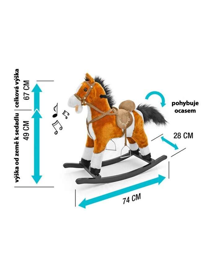 Datorită echipării complete, inclusiv șea cu scărițe, zăbală și mânere din lemn, copiii se bucură de o experiență autentică de „călărie”. Cadrul de balans poate fi demontat la nevoie. Sunetele și mișcările sunt alimentate de 3× AA (nu sunt incluse în pachet). Seria actuală este livrată fără panglica roșie.