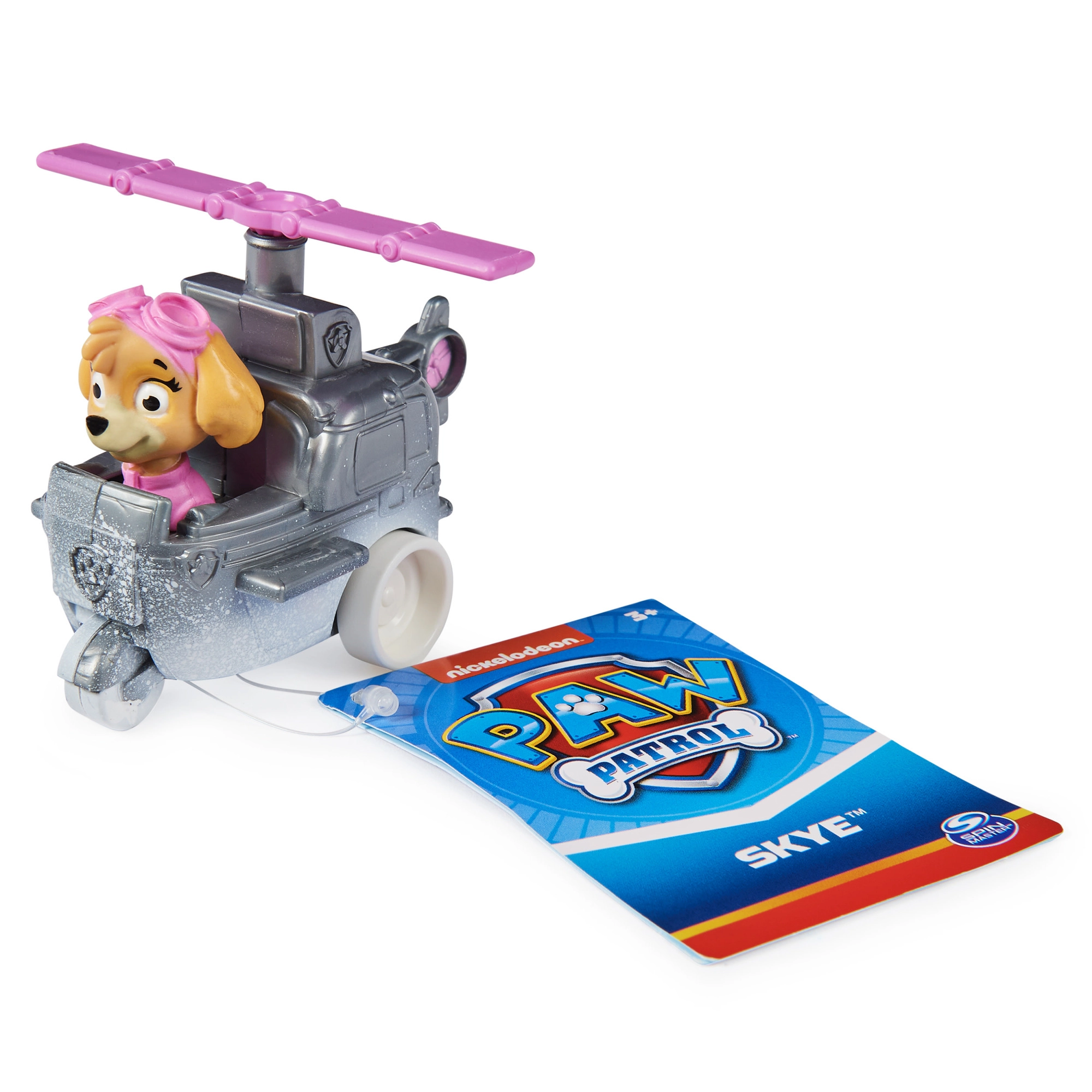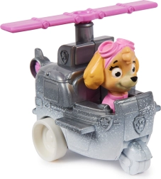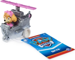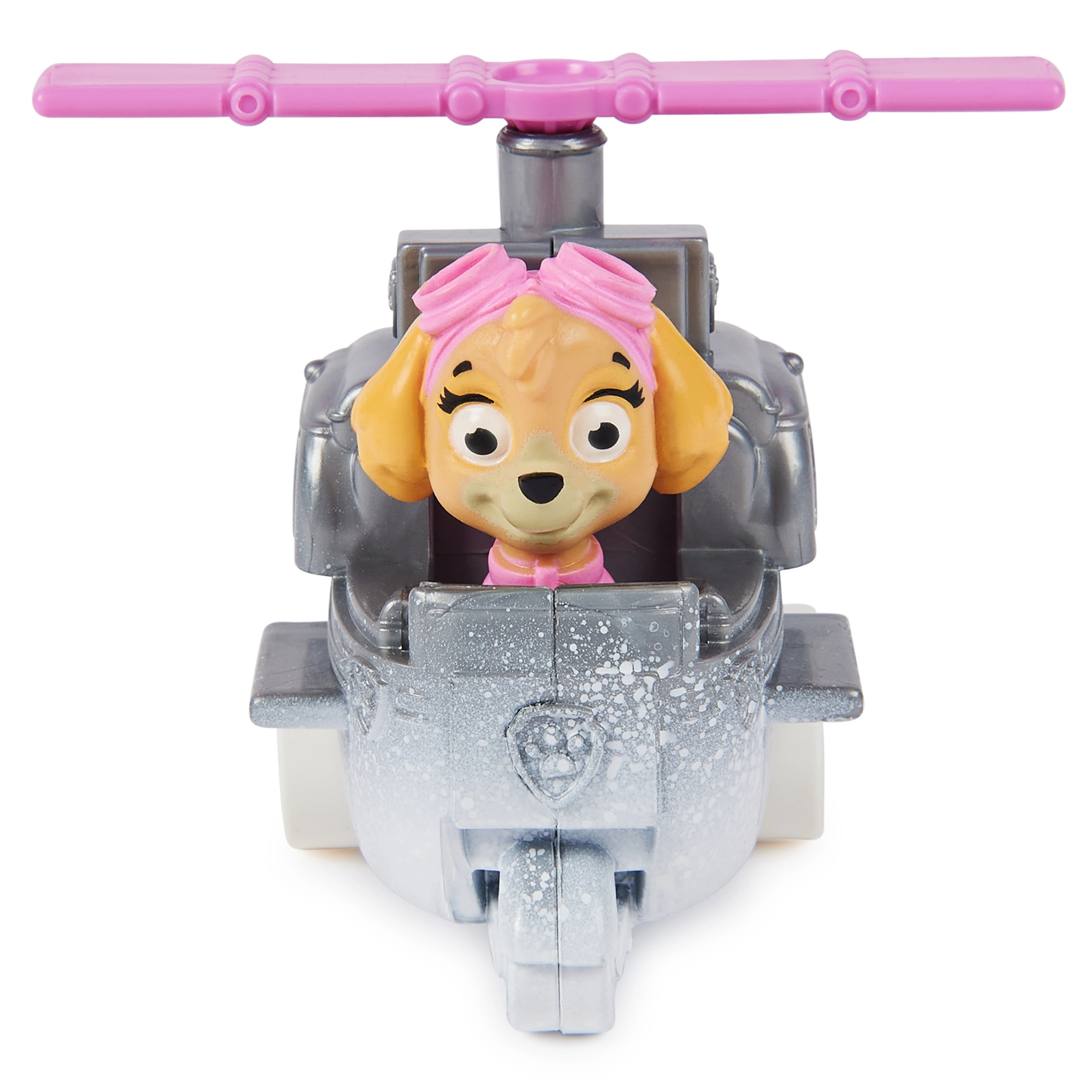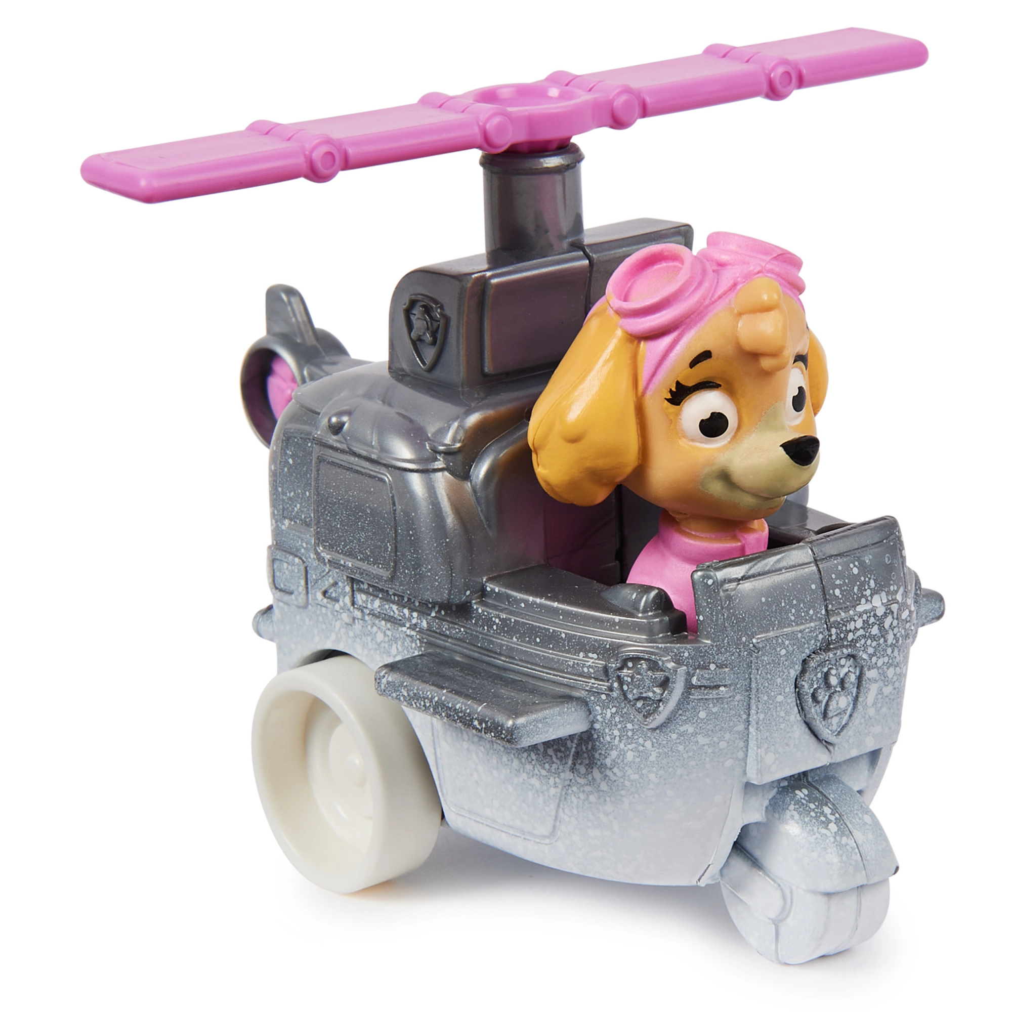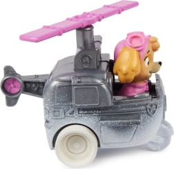 Pornește într-o misiune de salvare cu Skye în iconicul ei elicopter de zăpadă argintiu-roz. Detaliile cu efect de „zăpadă” oferă vehiculului o atmosferă de iarnă și stimulează imaginația copiilor. Datorită construcției rezistente și dimensiunii de 8 cm, este ideal pentru călătorii și pentru camera copiilor.