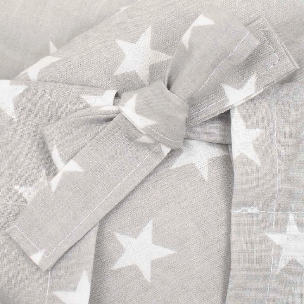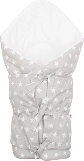 Scutecul tradițional cu șireturi, în design modern Steluțe, îmbină confortul dovedit cu materiale sigure. Datorită celor trei rânduri de panglici, bebelușul se înfășoară ușor și ferm, ceea ce îi oferă un sentiment de siguranță și ajută la adormirea liniștită. Combinația de gri și alb este universală și se potrivește perfect cu trusoul.