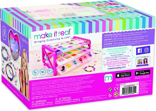 Aveți totul la îndemână: 2600 de mărgele pentru combinații nelimitate, 8 șnururi cerate colorate cu lungimea de 8 m fiecare și un șnur elastic cu lungimea de 4 m. Setul este ideal pentru creații acasă, pentru ateliere și ca dar pentru micii bijutieri.