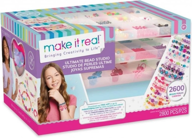 Studioul de mărgele este un set creativ excelent pentru copii, care dezvoltă imaginația și motricitatea fină. Datorită gamei bogate de forme și culori ale mărgelelor, veți proiecta cu ușurință coliere, brățări, inele și bentițe originale. Șnururile cerate sunt rezistente și ușor de manevrat, iar șnurul elastic transparent permite înșirarea comodă fără închizători.