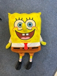 Acest pluș oficial licențiat aduce în camera copilului energia veselă a lumii subacvatice din Bikini Bottom. Burețelul galben, cu zâmbetul său tipic, cămașă, cravată roșie și pantaloni maro, este din pluș moale care pur și simplu te îmbie la îmbrățișat.