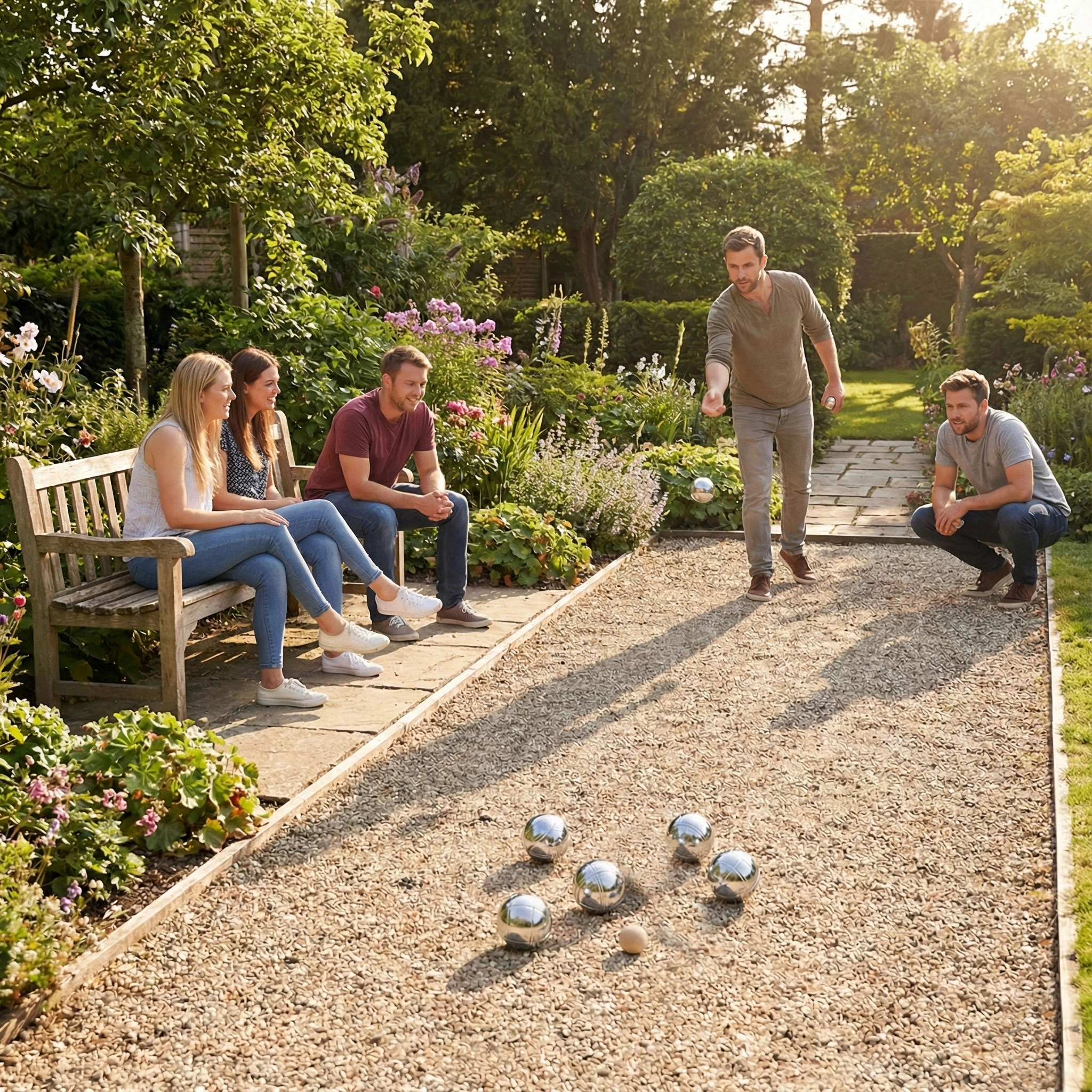 Pétanque este un joc social de exterior, pe care îl poate învăța oricine. Scopul este să arunci mingile astfel încât să aterizeze cât mai aproape de cochonnet. Datorită husei compacte, luați setul oriunde – în grădină, pe plajă, la picnic sau într-un weekend în afara orașului. Nu este necesar un teren special, puteți juca aproape oriunde.