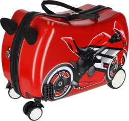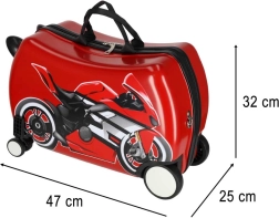 Însoțitor distractiv și practic pentru călătorii: acest troler pentru copii cu motiv de motocicletă combină funcția de vehicul de împins/tras și bagaj de cabină. Datorită celor patru roți silențioase, construcției ușoare și curelei de umăr detașabile, copiii îl pot ghida, trage sau purta cu ușurință. Carcasa dură rezistentă ABS+PC protejează lucrurile în călătorii, iar volumul de 30 de litri încape tot ce e necesar.