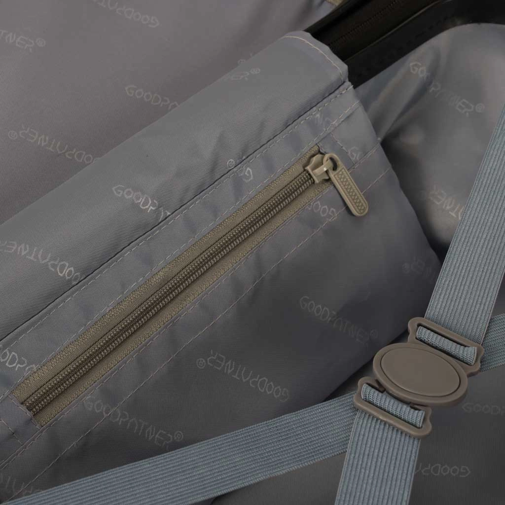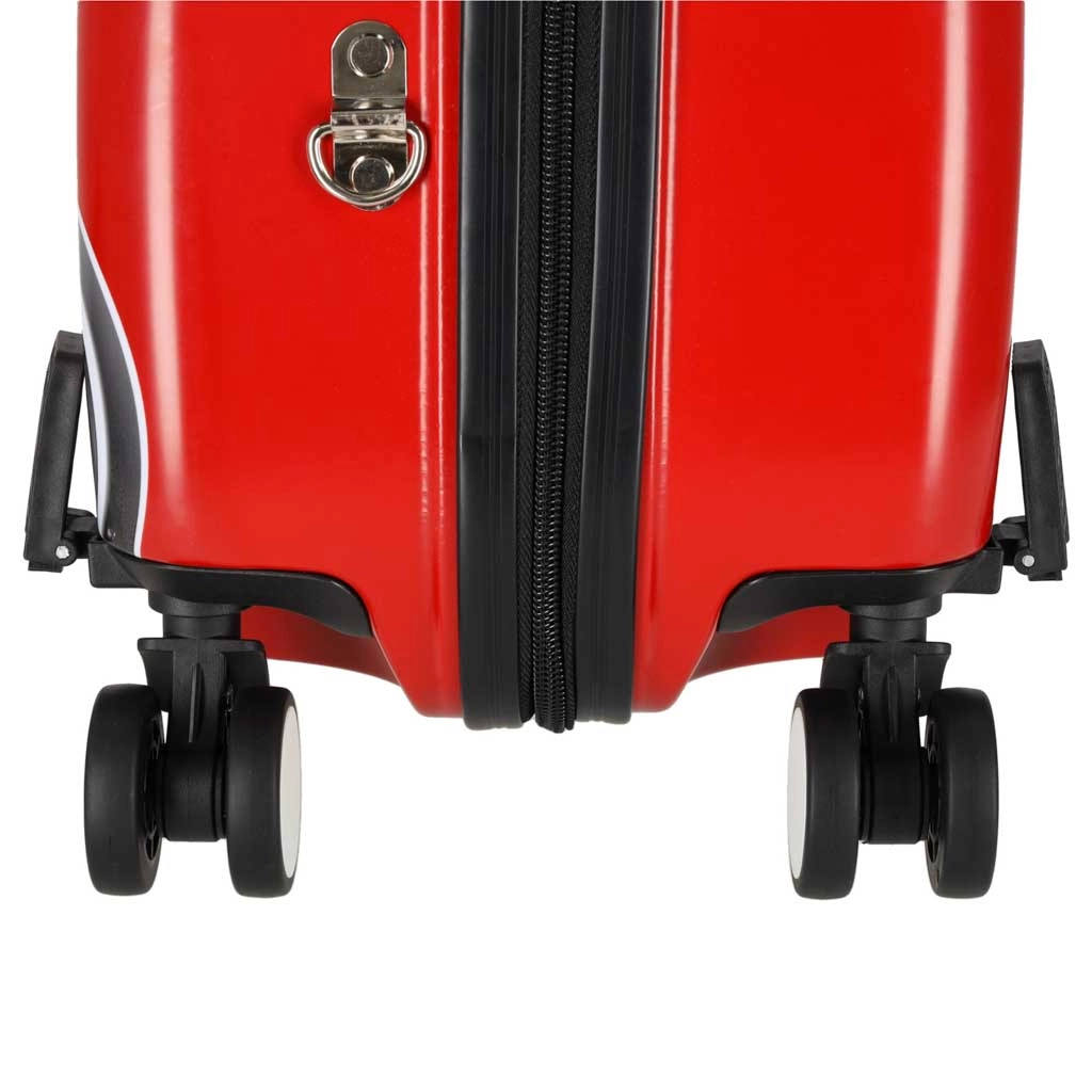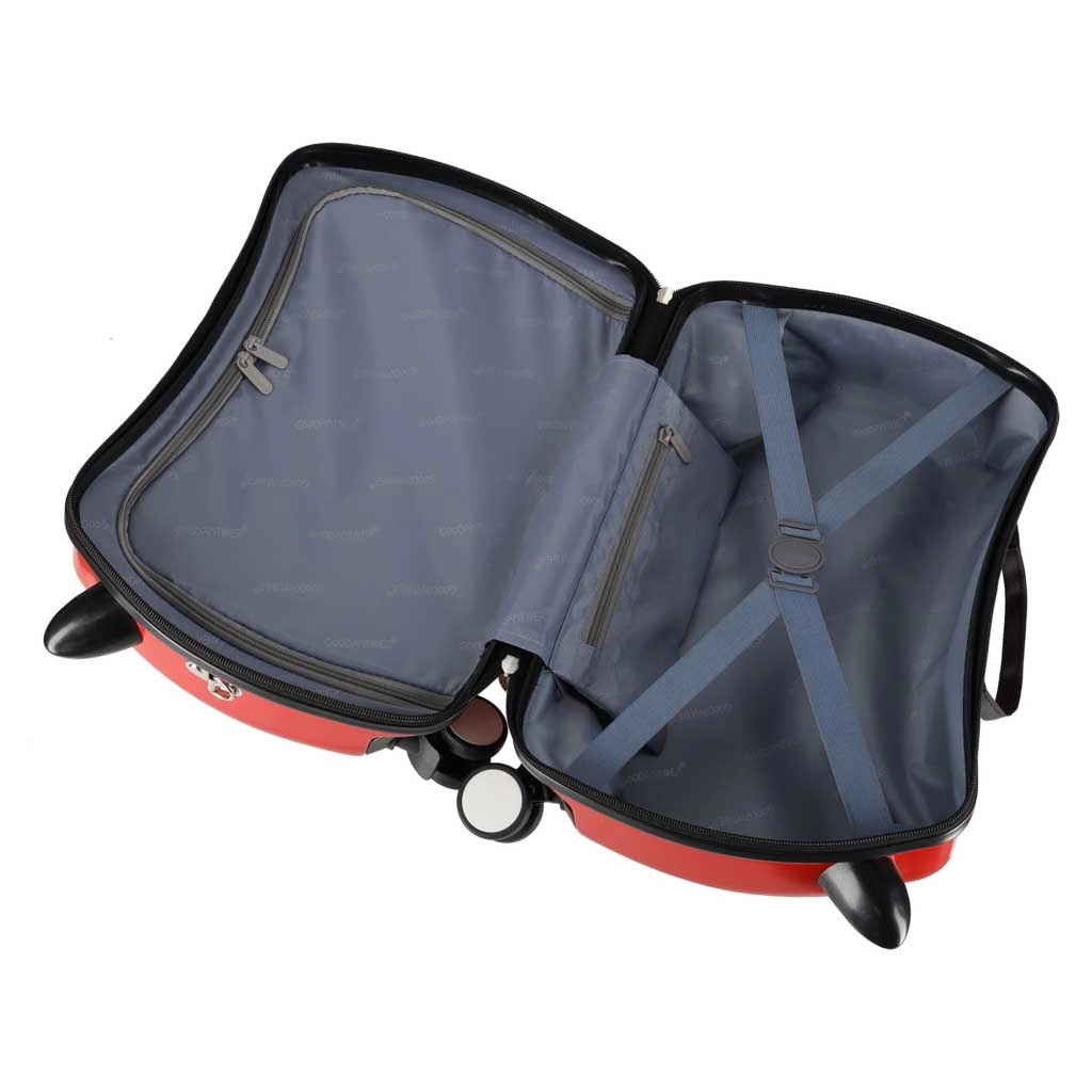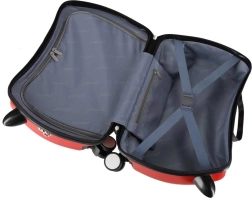 Carcasa ușoară și rezistentă ABS+PC suportă șocuri și utilizare frecventă de către micii călători. Interiorul oferă compartiment cu fermoar, curele în cruce și un buzunar cu fermoar practic pentru organizarea obiectelor mărunte. Trolerul poate fi purtat în mână, pe umăr cu ajutorul curelei detașabile (130 cm) sau tras confortabil pe roți.