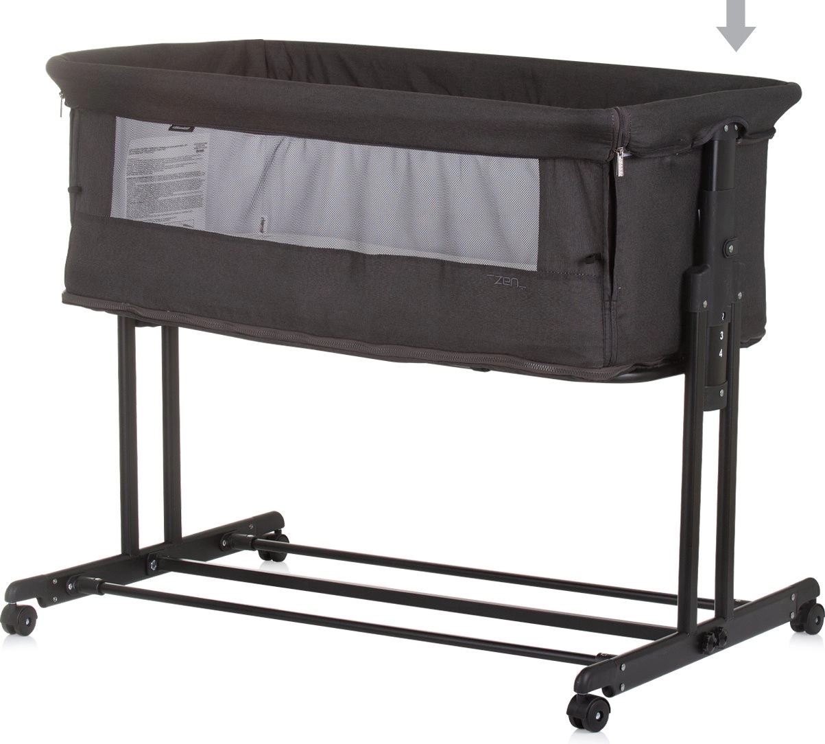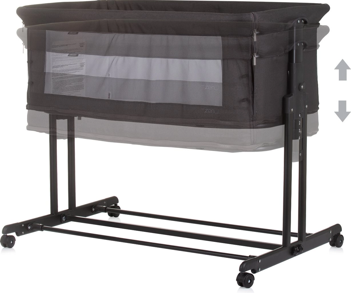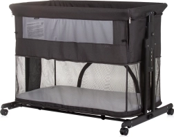 CHIPOLINO Zen Obsidian este un pătuț atașabil și pătuț pentru nou-născuți până la 6 luni (până la 9 kg), pe care îl transformi ușor într-un țarc pentru copii până la 15 kg. Panourile laterale din plasă respirabilă asigură circulația aerului și contactul vizual, iar laterală lungă rabatabilă permite să ai bebelușul mereu aproape.