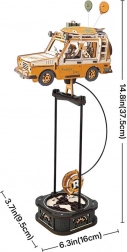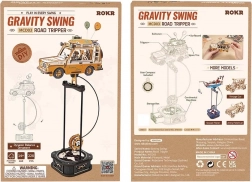 Road Tripper este un model mecanic ingenios din placaj natural, care prinde viață după asamblare datorită pendulului cu greutate și angrenajelor din bază. Mașina inspirată de off-road-urile retro atrage prin detalii – șoferul cu cafea, câinele credincios în călătorie, placa de surf și valiza de pe acoperiș, precum și baloanele care completează atmosfera de aventură.