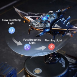 Puzzle-ul 3D mecanic RoboTime manta ray aduce în interior o combinație impresionantă de tehnologie și farmec natural. Modelul în săgeți realist și mișcarea fluidă a înotătoarelor creează impresia eleganței fără greutate a unei mantre reale. La apăsarea butonului, înotătoarele pectorale încep să se legene, coada se mișcă ușor, iar luminile LED se aprind sincron.