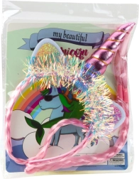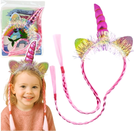 Bentiță roz magică în stil unicorn, cu corn, urechiușe și codițe lungi împletite, ideală pentru copii și adulți. Se potrivește perfect datorită mărimii universale, este confortabilă de purtat și adaugă oricărei ținute un aspect magic – pentru petreceri, ședințe foto, carnaval și strălucire zilnică.