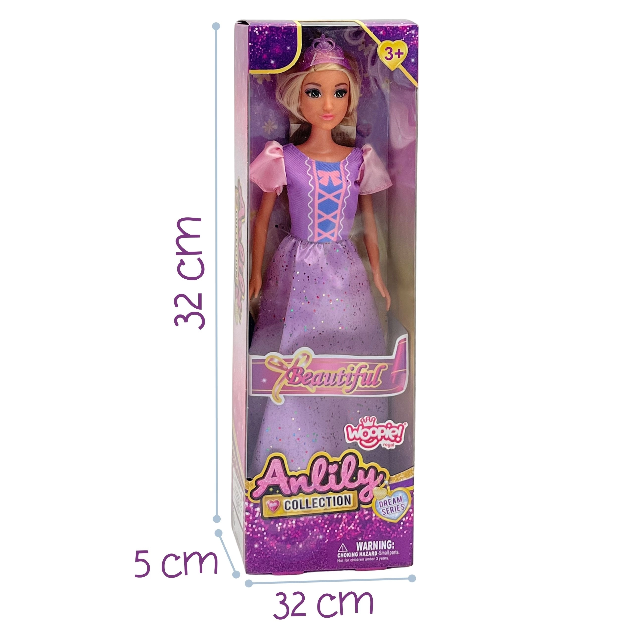 Păpușa fermecată Lily de la Woopie îi va cuceri pe micii iubitori de povești. Are păr blond lung pentru pieptănat și coafat, poartă o rochie de gală sclipitoare mov‑roz cu mânecuțe bufante și o tiară mov transparentă. Susține imaginația, jocul de rol și poveștile creative. Potrivită pentru copii de la 3 ani.