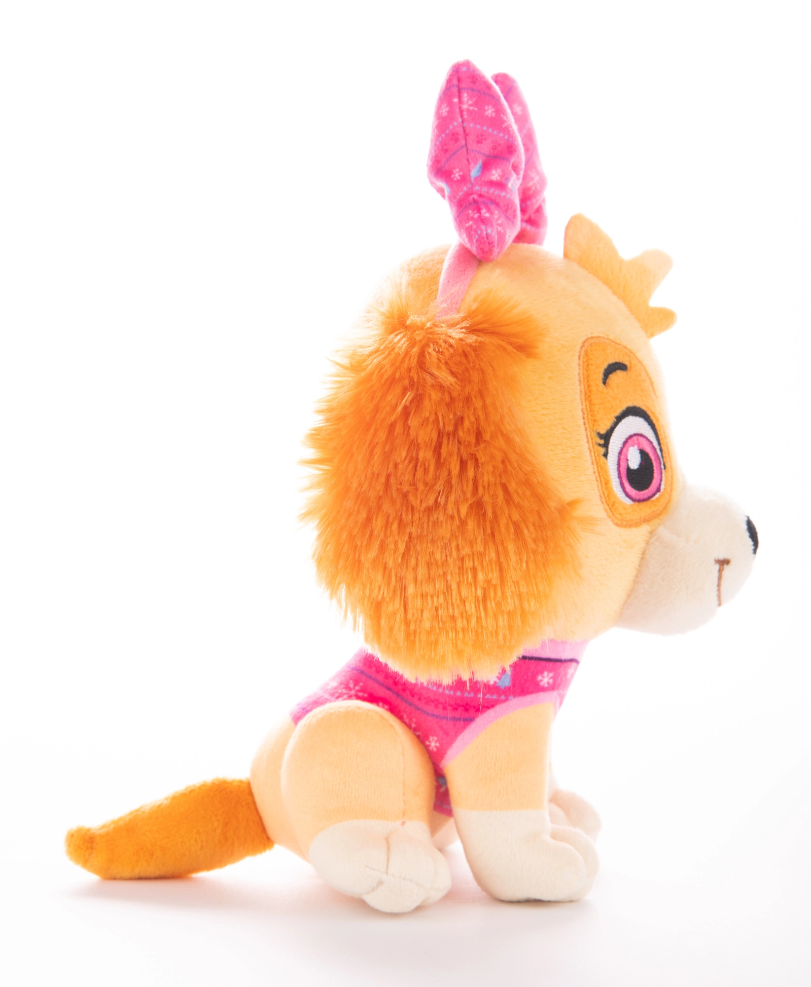 Întâmpinați-o acasă pe Skye, curajoasa pilotă din îndrăgitul serial PAW PATROL. Această jucărie de pluș de calitate, cu pulover roz de Crăciun și funda ei caracteristică, cucerește prin materialul fin, finisajele atente și expresia prietenoasă. Datorită dimensiunii compacte de 18 cm, este grozavă pentru mânuțele copiilor, pentru călătorii și pentru pătuț.