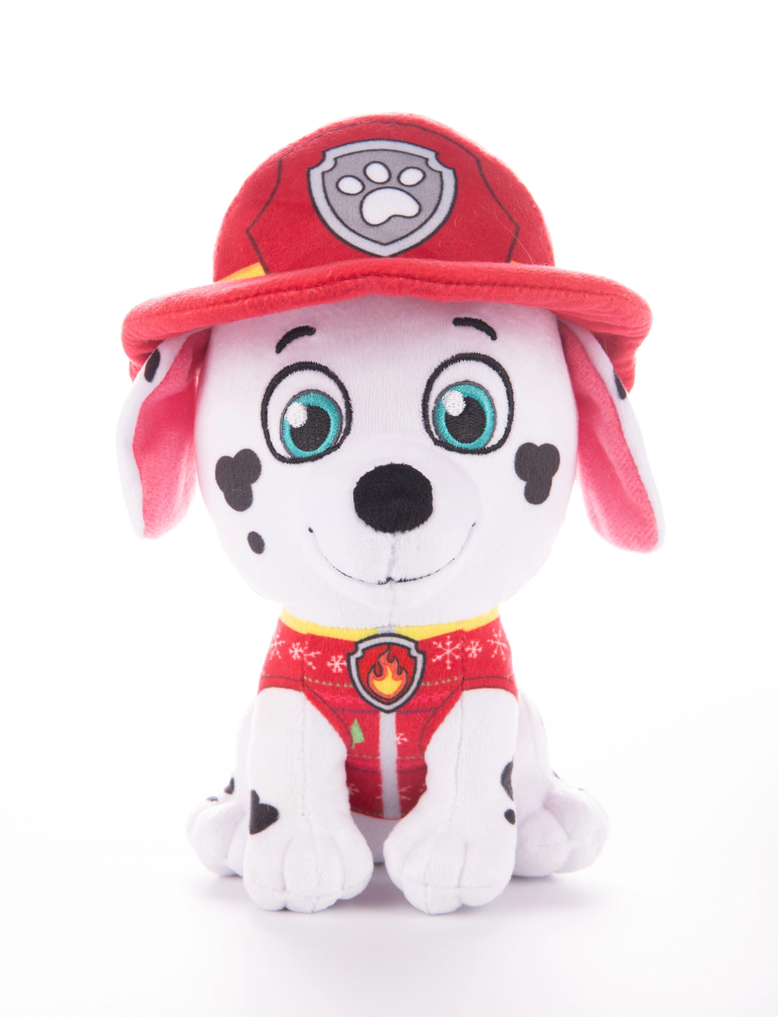 Jucăria de pluș Marshall va încânta toți fanii PAW PATROL. Acest curajos cățel pompier are ochi albaștri caracteristici, un zâmbet prietenos și poartă un pulover de iarnă cu motive drăgălașe care creează o atmosferă festivă și călduroasă.