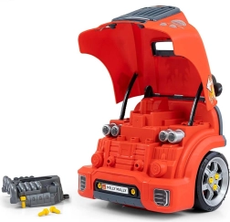 Include volan cu claxon, spațiu de depozitare pentru unelte, rotițe detașabile și autocolante pentru personalizare. Jucăria dezvoltă motricitatea fină, coordonarea mână–ochi și răbdarea. Construcția este concepută cu accent pe siguranță și respectă normele europene.