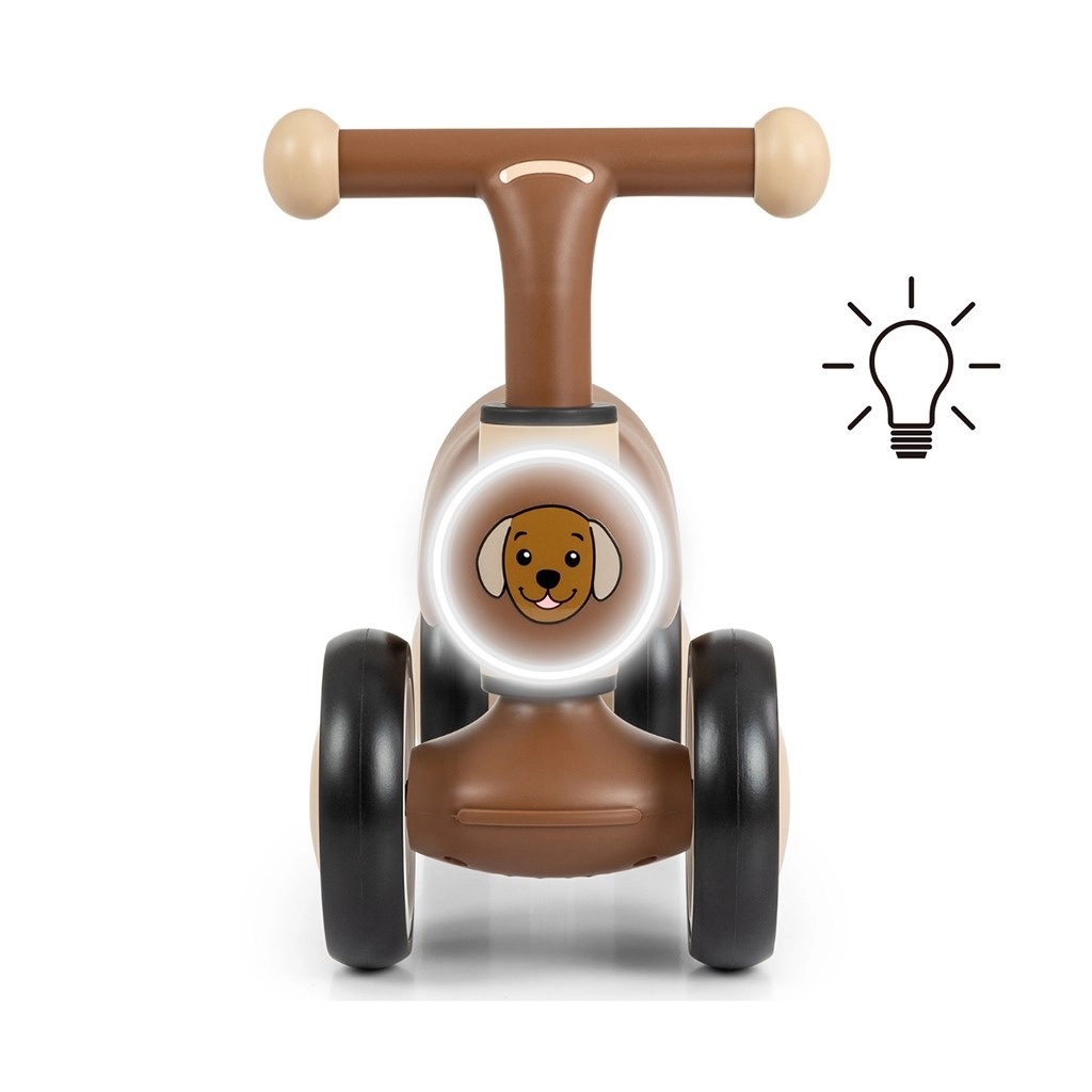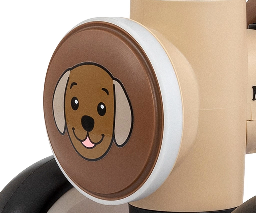 Părinții vor aprecia montajul rapid, construcția solidă și capacitatea maximă de încărcare de 25 kg. Lampa LED frontală (pe baterii) crește vizibilitatea și atractivitatea, iar melodiile și sunetele de animale transformă fiecare plimbare într-o aventură plină de bucurie.