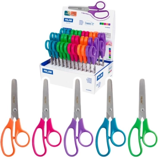 Foarfecele pentru copii MILAN Basic cu lungimea de 133 mm sunt concepute pentru mâinile mici ale copiilor și pentru utilizare în siguranță. Au vârfuri rotunjite pentru a preveni rănirile, mânere ergonomice din plastic pentru o prindere confortabilă și lame din oțel pentru tăieri precise în hârtie, carton și materiale creative – ideale pentru școală și pentru activități acasă.