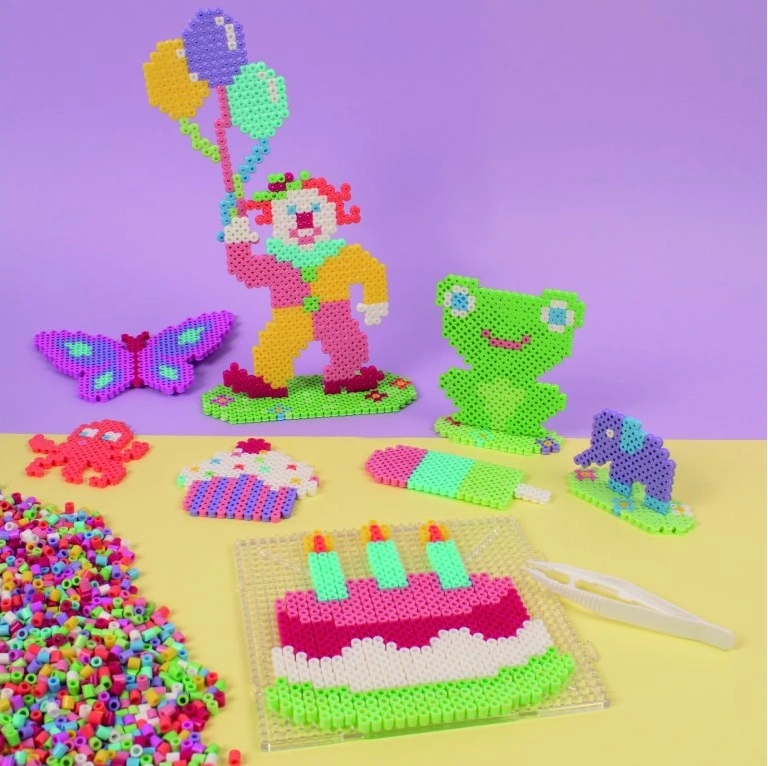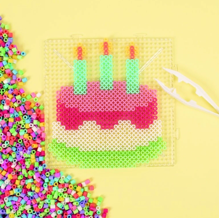 - 12.000 buc mărgele termoadezive, plăcuță pătrată, șabloane colorate, hârtie de călcat, pensetă