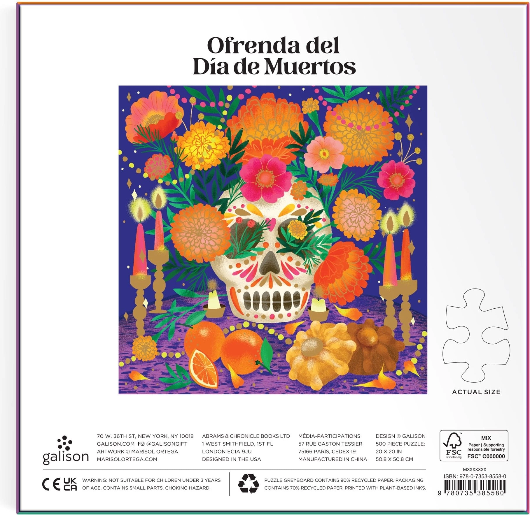 Bucurați-vă de o experiență unică de asamblare cu puzzle-ul pătrat cu motivul Altar de Ziua Morților, din 500 de piese. Efectul metalic elegant evidențiază culorile și detaliile, iar imaginea finală are dimensiunea de 50,8 × 50,8 cm. Pachetul include modelul de referință pentru o asamblare mai comodă.