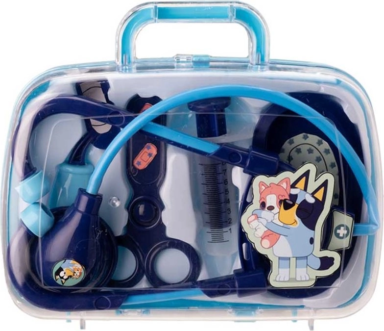 Oferă-le copiilor lumea aventurilor medicale alături de personajul îndrăgit BLUEY. Trusa medicală este ideală pentru jocul de-a doctorul acasă și în colectivele de copii – dezvoltă imaginația, comunicarea și empatia. Ambalajul practic, cu partea frontală transparentă, permite să ai totul la îndemână și, în același timp, îi invită pe cei mici la descoperire.