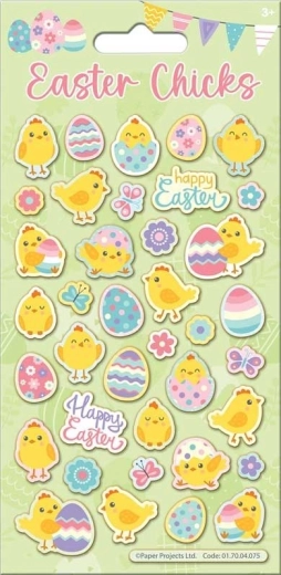 Creează o atmosferă festivă în câteva clipe. Autocolantele sclipitoare cu motive pascale sunt ideale pentru decorarea ouălor, cărților, bibliorafturilor, huselor, telefoanelor mobile sau a cutiilor de gustări. Datorită lipirii repetate le poți muta și combina după bunul plac.