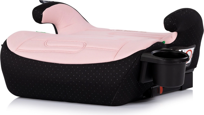 Suportul de băutură practic păstrează sticla mereu la îndemână, iar husa detașabilă și lavabilă facilitează întreținerea. Înălțătorul este destinat copiilor cu înălțimea de 125–150 cm, respectând principiile i‑Size de selecție în funcție de înălțimea copilului, pentru o poziționare și o ghidare corectă a centurii de siguranță.