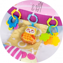 Jucăriile suspendate, inelele și zornăitoarele încurajează explorarea, prinderea și mușcarea, susținând coordonarea mână-ochi.