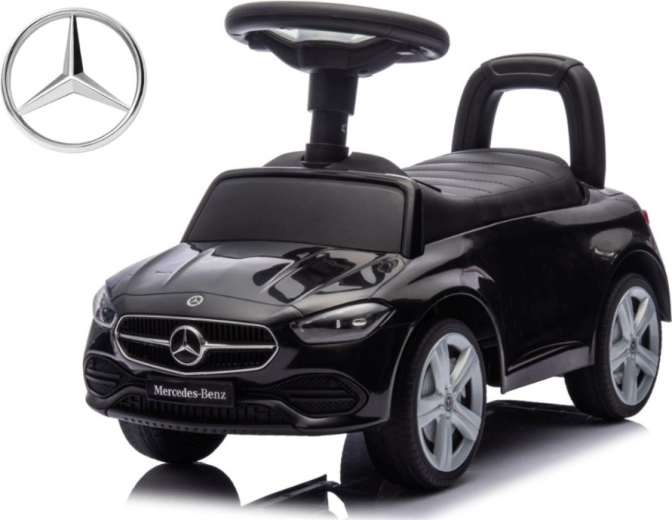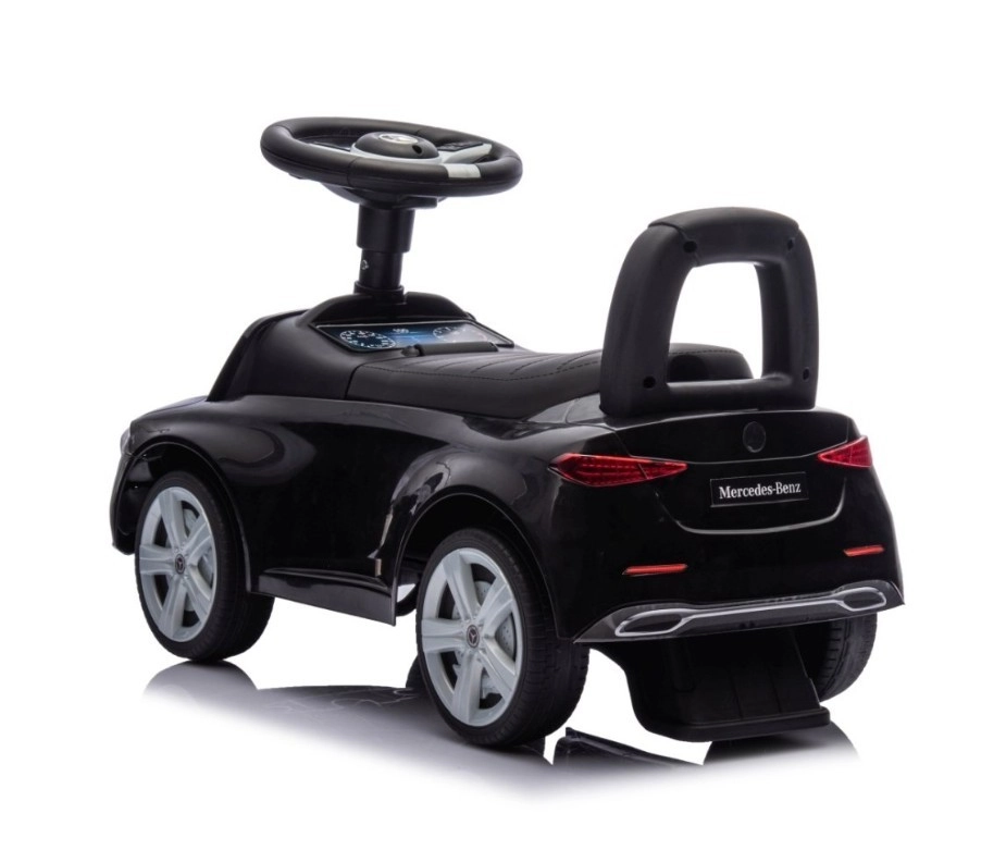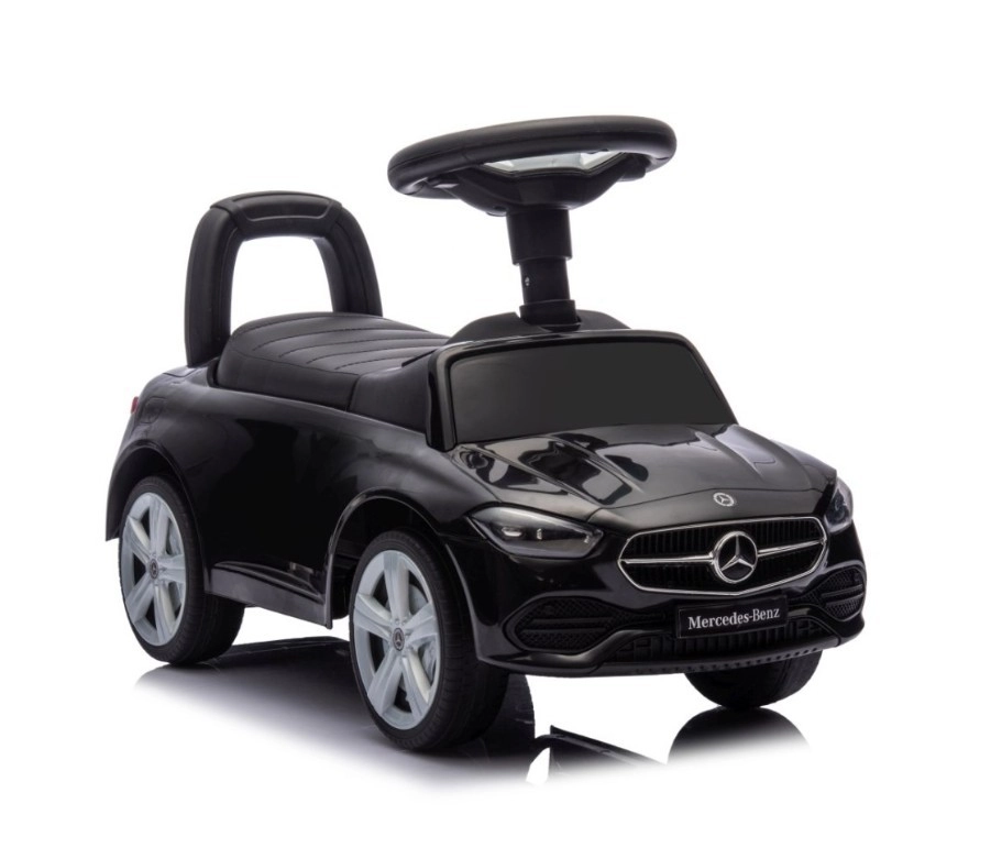Mașinuța de împins stilată MERCEDES C‑CLASS în eleganta culoare neagră îi va încânta pe micii șoferi prin aspectul realist și detaliile bine gândite. Oferă mers stabil, scaun confortabil cu spătar și spațiu de depozitare sub șezut. Datorită roților frontale pivotante și claxonului funcțional dezvoltă motricitatea, coordonarea și imaginația copilului, în timp ce protecția împotriva răsturnării asigură distracție în siguranță acasă și afară.