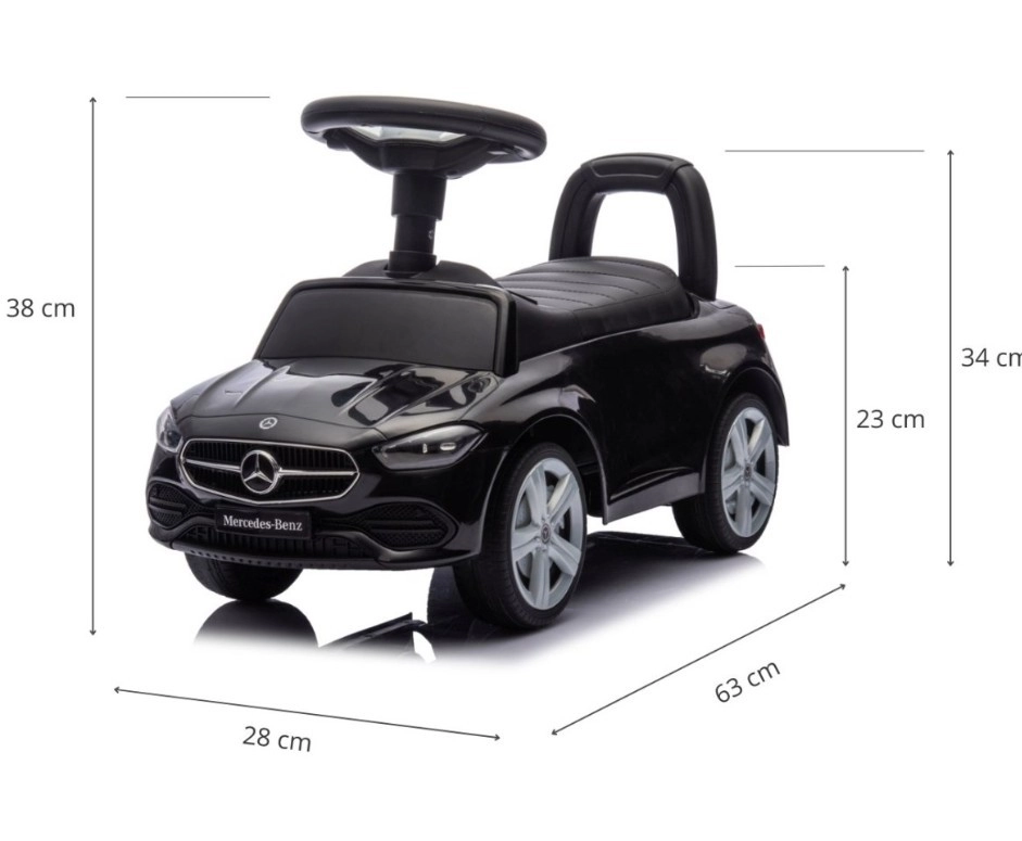 Micul MERCEDES C‑CLASS aduce o combinație de design realist, confort și siguranță. Copiii învață ușor bazele conducerii datorită manevrării simple cu volanul, în timp ce construcția robustă și roțile late garantează stabilitate la mers. Mașinuța este realizată din materiale sigure pentru copii și încântă prin detalii inspirate de vehiculul real.