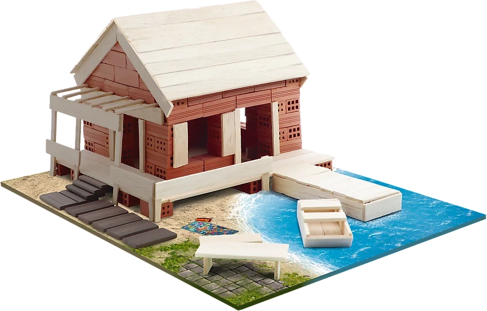 Devino constructor și creează-ți propria reședință de vară din cărămizi reale de lut și lemn. Setul oferă o experiență realistă de construcție – de la fundații până la detaliile finale și decorațiuni. Poți urma instrucțiunile ilustrate sau îți poți lăsa imaginația liberă pentru a proiecta propria soluție. Îți poți anima construcția finalizată cu figurinele din hârtie incluse.