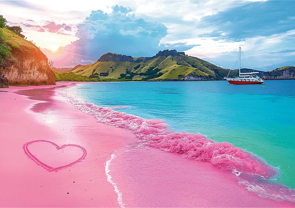 Bucură-te de relaxare asamblând puzzle-ul TREFL cu motivul plajei tropicale roz. Pachetul conține 1000 de piese și un poster inclus pentru asamblare mai ușoară. După finalizare rezultă o imagine cu dimensiunile de 68 × 48 cm.