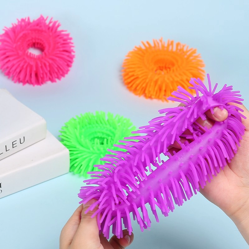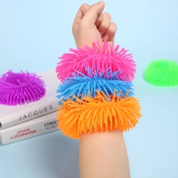 Brățara anti-stres stufoasă îmbină efectul de relaxare cu un aspect modern. „Ciucurii” moi din cauciuc stimulează plăcut simțul tactil și ajută la concentrare la muncă, la studiu sau în călătorii. Datorită dimensiunii universale, se poartă confortabil și devine în același timp un ajutor distractiv împotriva stresului.