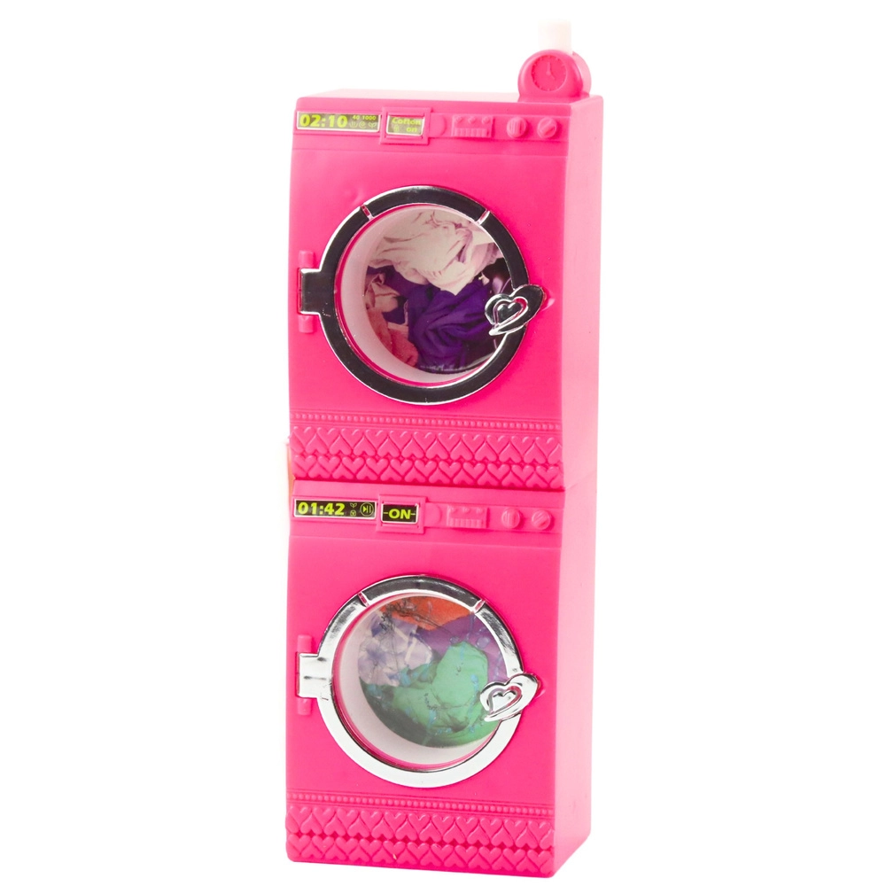 Spălătoria roz pentru păpuși, pentru păpuși de cca 29 cm, aduce un joc realist de gospodărie. Include mașină de spălat cu tambur rotativ, uscător, cuier pe stativ cu umerașe, coș pentru rufe și accesorii precum „detergenți” și fier de călcat. Susține creativitatea, motricitatea fină și jocurile de rol.