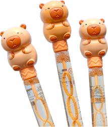 Puneți în mișcare un vârtej de bule colorate cu bagheta jucăușă cu capybara. Datorită construcției mai lungi, soluția se încarcă ușor și creează un flux stabil și larg de bule. Ideal pentru plimbări, în parc, în grădină și la petrecerile pentru copii.