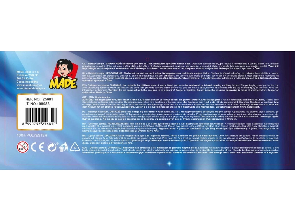 Mărimea este destinată copiilor mici cu înălțimea de 110–120 cm. Vârsta recomandată de la 3 ani.