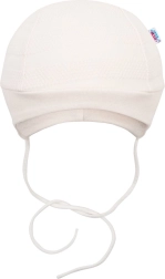 Jacheta ușoară cu capse completează ținuta, iar căciulița cu legături protejează sigur căpușorul și urechile bebelușului.