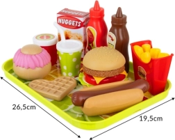 Acest set bogat pentru joc de fast food le oferă copiilor tot ce au nevoie pentru a pregăti propriul meniu – de la burger și hot dog la cartofi prăjiți, vafă, brioșă și băuturi. Piesele pot fi ușor separate și reconectate, astfel încât copiii își dezvoltă creativitatea, gândirea logică și abilitățile de coordonare.