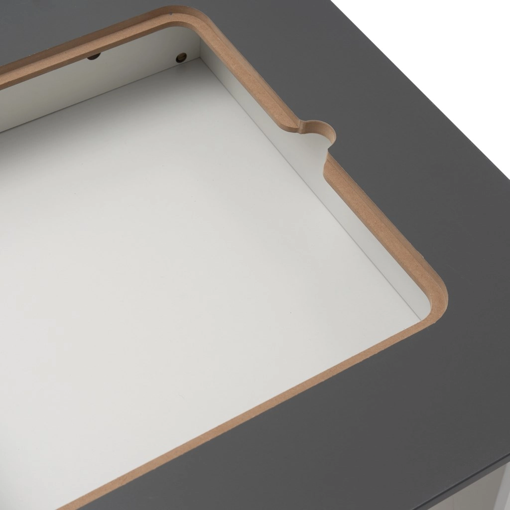 Sub blatul mesei se află un spațiu practic pentru creioane colorate, hârtie și jucării mici – ordine și totul la îndemână în timpul jocului și al creației.