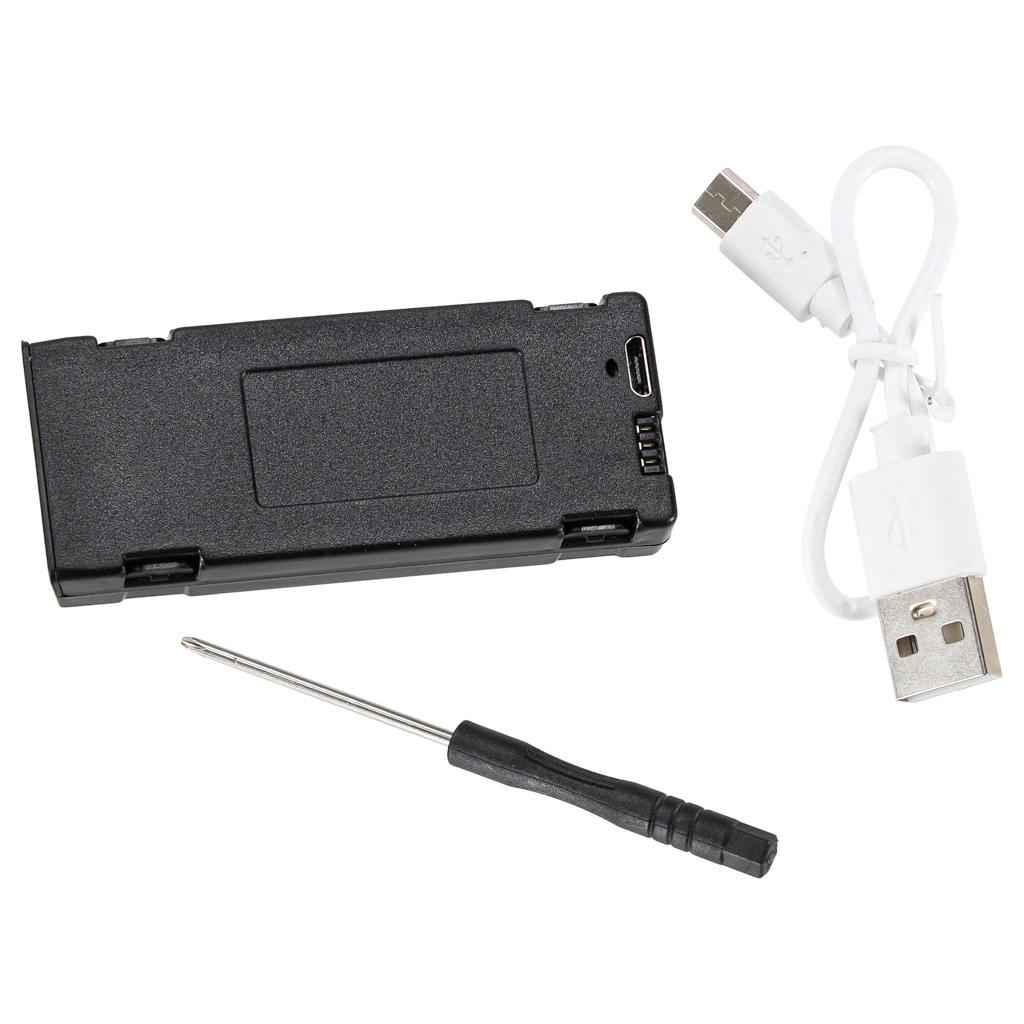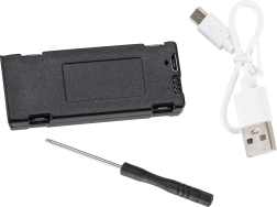 - dronă RTF cu acumulator, telecomandă, elicii de rezervă ×12, apărători elicii ×4, acumulator de rezervă, cablu USB (mini/micro în funcție de versiune), șurubelniță, husă cu fermoar și mâner, manual