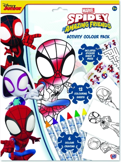 Descoperă distracția creativă cu setul Spidey fișe de lucru cu culori. Pachetul conține 12 fișe tematice pe care copiii le pot colora cu cele 6 creioane cerate incluse și le pot decora în plus cu autocolante cu eroi din lumea SPIDEY. Grozav pentru activități acasă sau în călătorii.