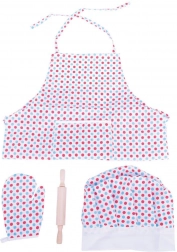 - șorț, bonetă de bucătar, mănușă, sucitor din lemn, forme de tăiat din metal