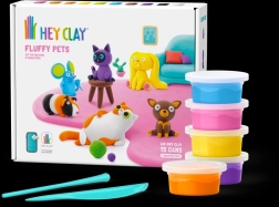 Setul creativ Hey Clay Fluffy Pets este alegerea ideală pentru copiii care iubesc modelajul și animăluțele. Pasta moale și fină, în culori vii, se modelează ușor, nu se lipește și, după finalizare, se întărește natural la aer. Astfel, copiii obțin propriile figurine, cu care pot continua să se joace sau să le expună.