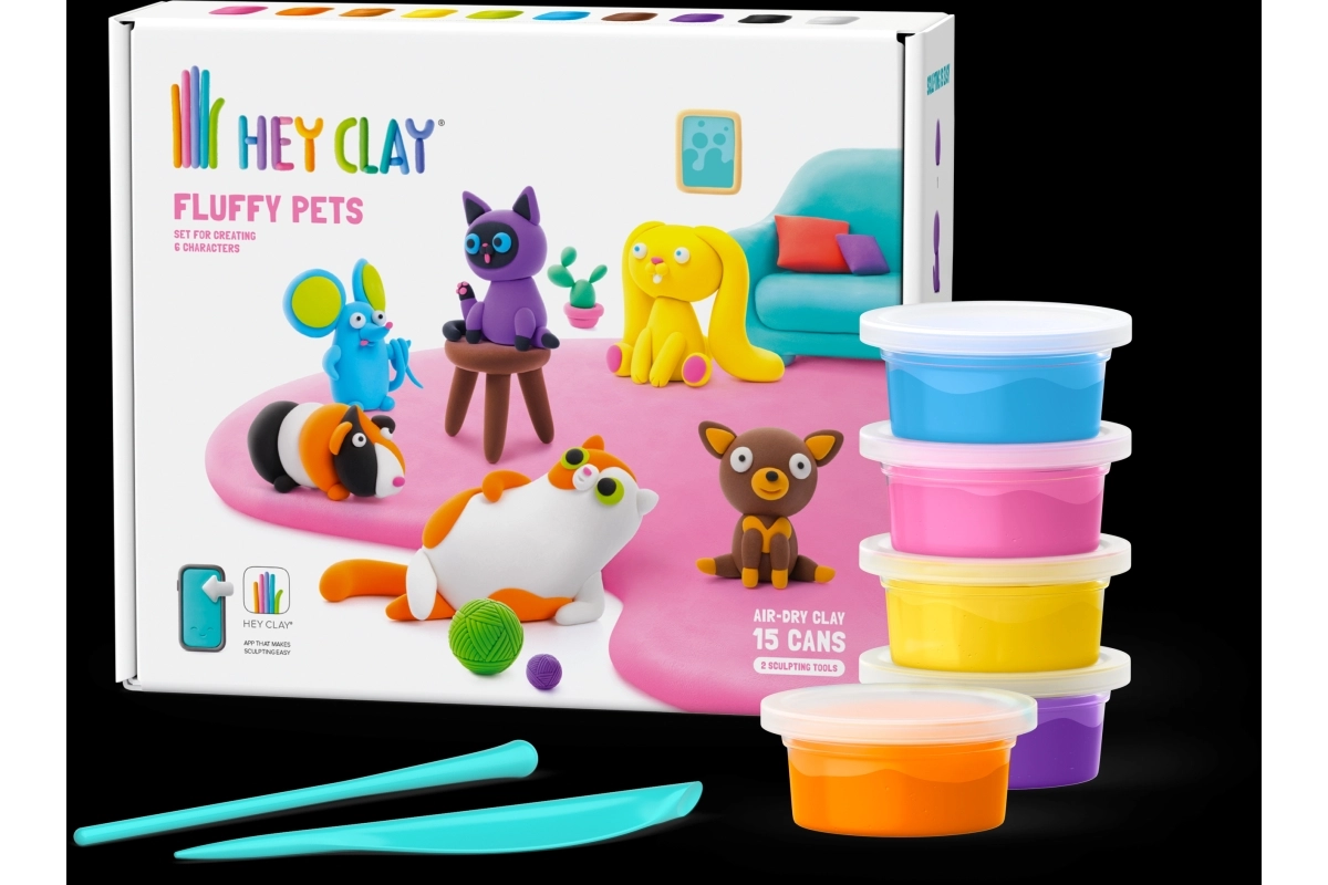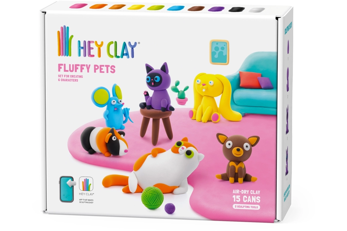 Descoperă distracția cu setul creativ Hey Clay Fluffy Pets – un pachet cu 15 borcănașe de pastă ușoară, parfumată și cu uscare la aer, cu care copiii pot crea cu ușurință animăluțe adorabile pas cu pas. Datorită aplicației gratuite Hey Clay (iOS/Android) cu cod de deblocare a instrucțiunilor inclus, pot realiza 6 figurine: 2 căței, 2 pisicuțe, un cobai și un șoricel. Modelele finite, după uscarea la aer, se întăresc și devin parte din alte jocuri. Vârsta 3+.