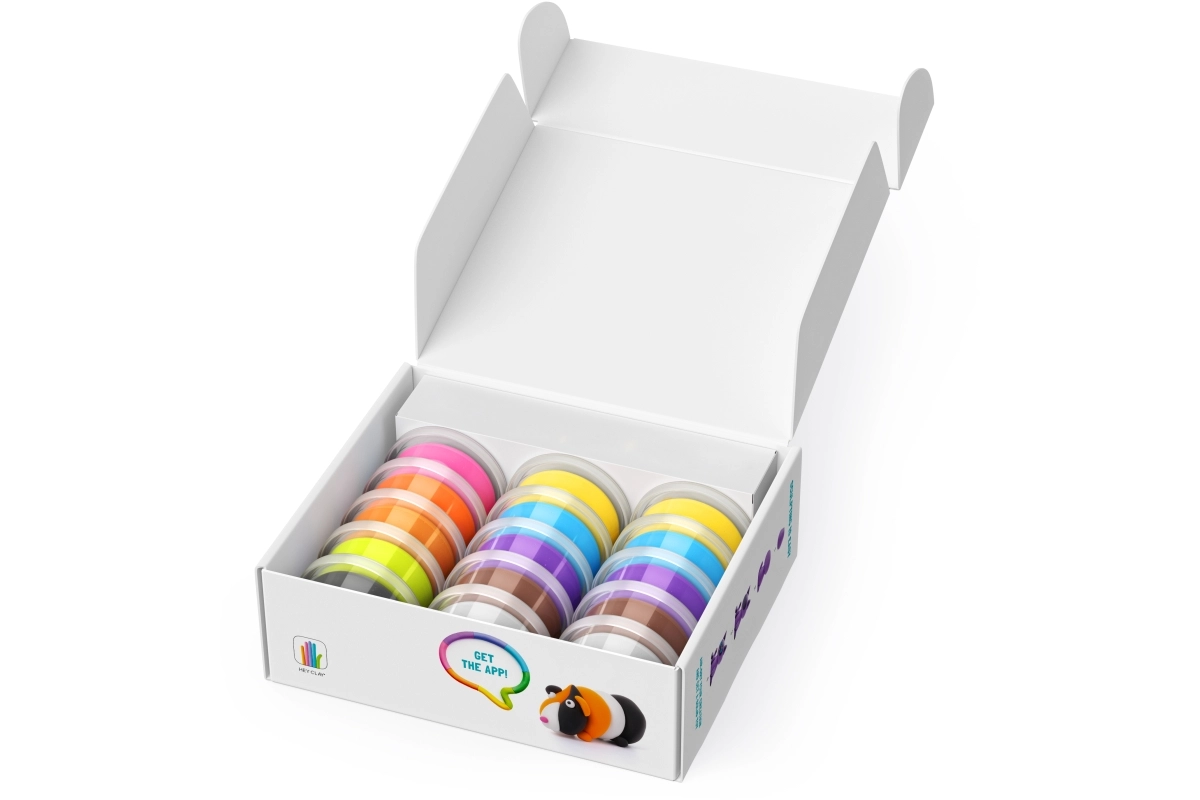 - 15 borcănașe cu pastă de modelaj, cod de acces pentru aplicația HEY CLAY
