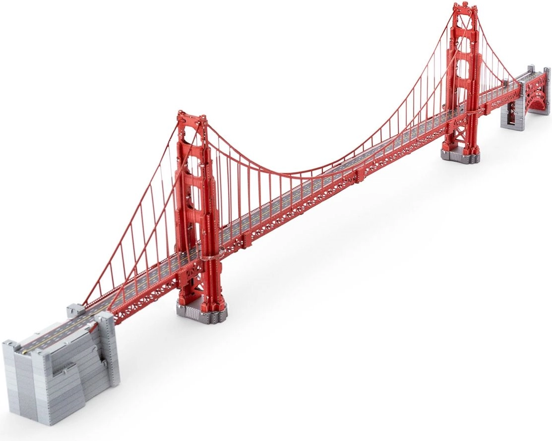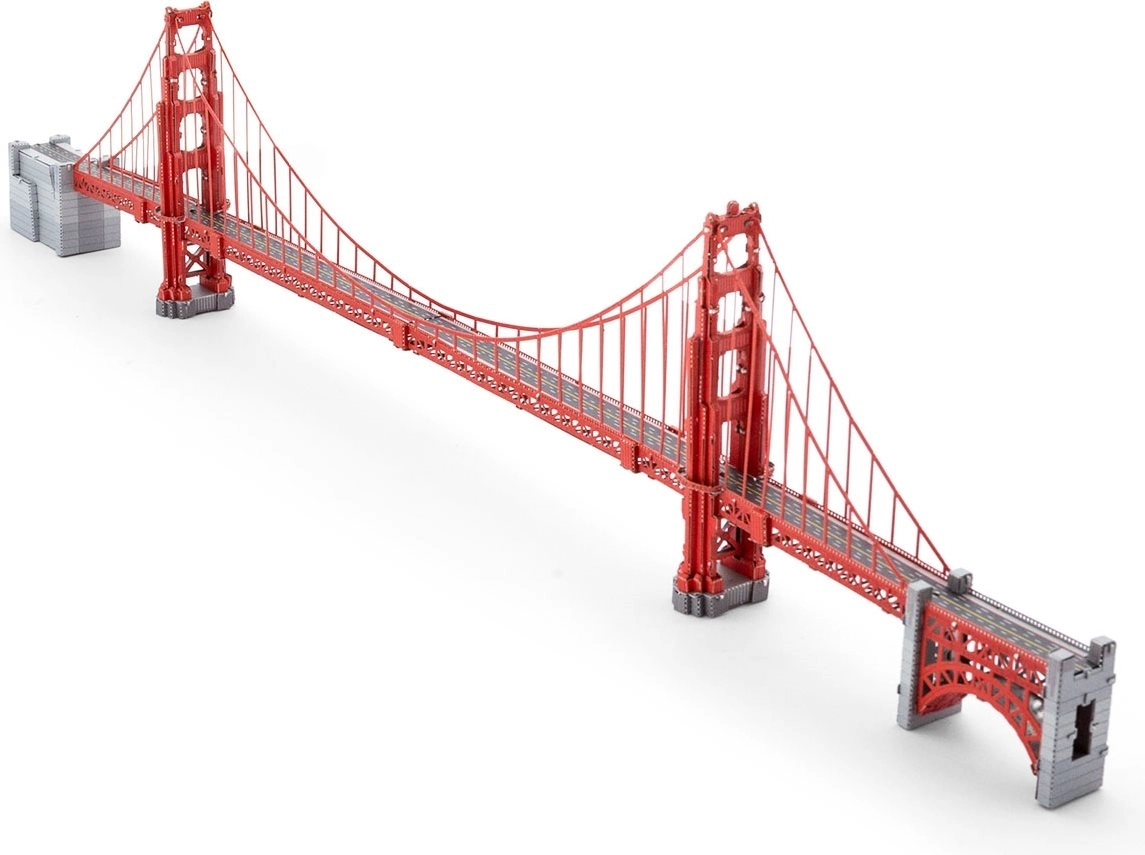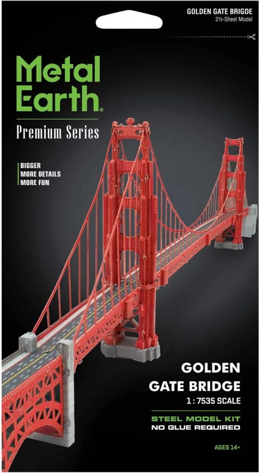 Descoperă bucuria modelismului de precizie cu puzzle-ul 3D metalic METAL EARTH Premium. Datorită gravării laser ies în evidență chiar și cele mai mici detalii ale legendarului pod Golden Gate – de la turnuri și cabluri suspendate până la carosabilul realist. Modelul final este un excelent accesoriu de interior, un cadou pentru iubitorii de arhitectură și o alegere ideală pentru colecționarii de miniaturi metalice.