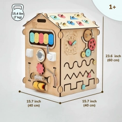 Căsuța Montessori BusyKids în culoare naturală este o alegere perfectă pentru toddleri și preșcolari. Copiilor le place să se ascundă înăuntru, să exploreze spațiul și totodată să exerseze coordonarea mână–ochi, concentrarea și răbdarea. Acoperișul include o tablă pentru desen și un puzzle de introdus piese, iar pereții oferă fermoare, arici, lampă tactilă, ceas desteptător, elemente motrice, butoane, ferestre și uși.