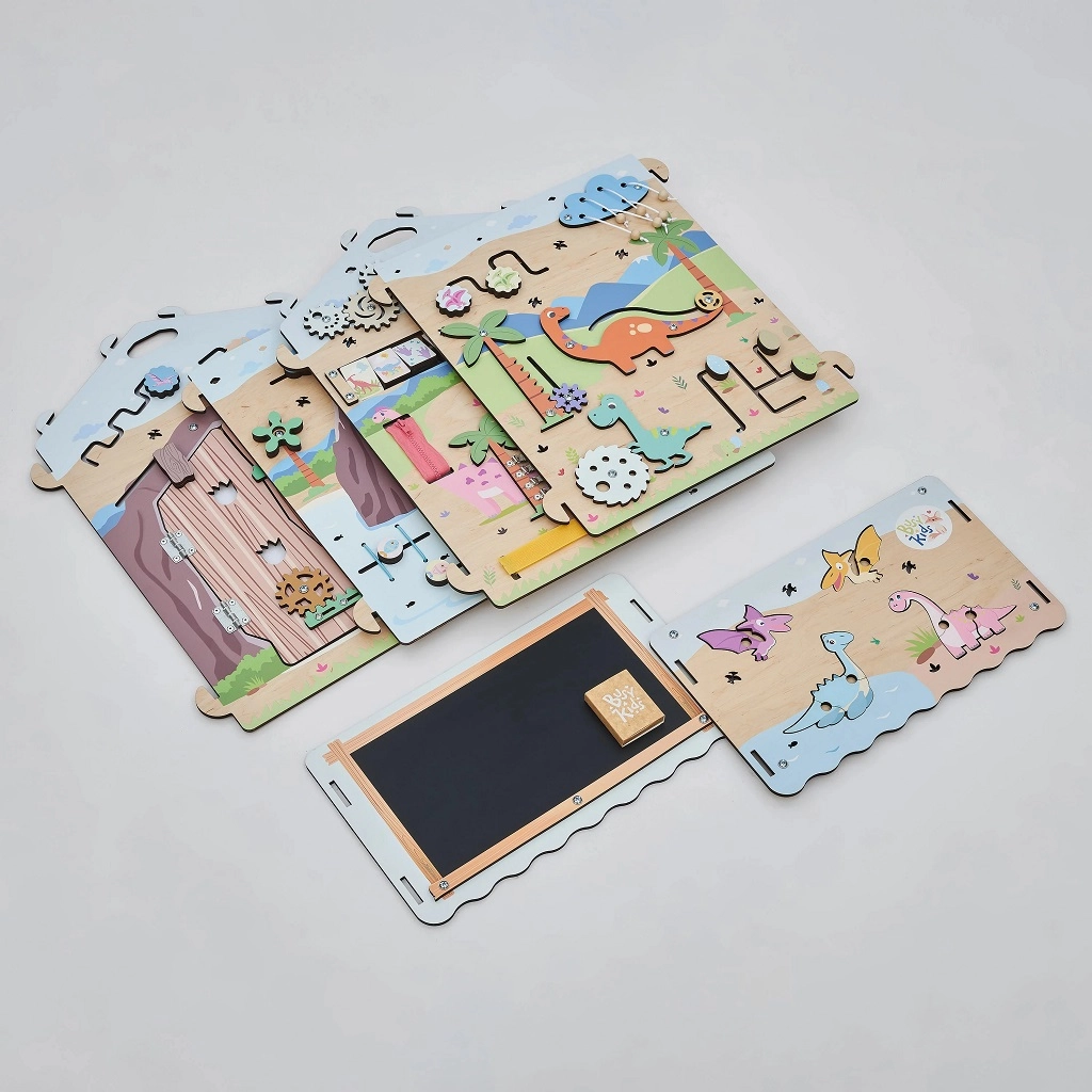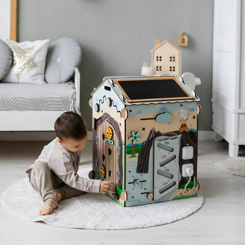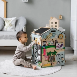 Roți dințate, glisoare, încuietori, șireturi și alte mecanisme ingenioase susțin motricitatea fină, coordonarea mână–ochi și gândirea logică într-un mod ludic.