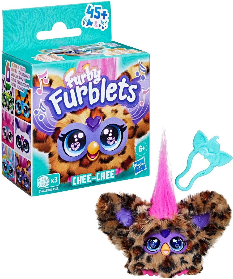 Furby Furblet Chee-Chee este un mic companion din pluș, cu o mare personalitate. Cântă melodii originale, scoate sunete amuzante și, cu expresivitatea sa haioasă, îi va încânta atât pe copii, cât și pe adulți. Ia-l cu tine în călătorii – clipsul permite prinderea ușoară de rucsac sau poșetă.