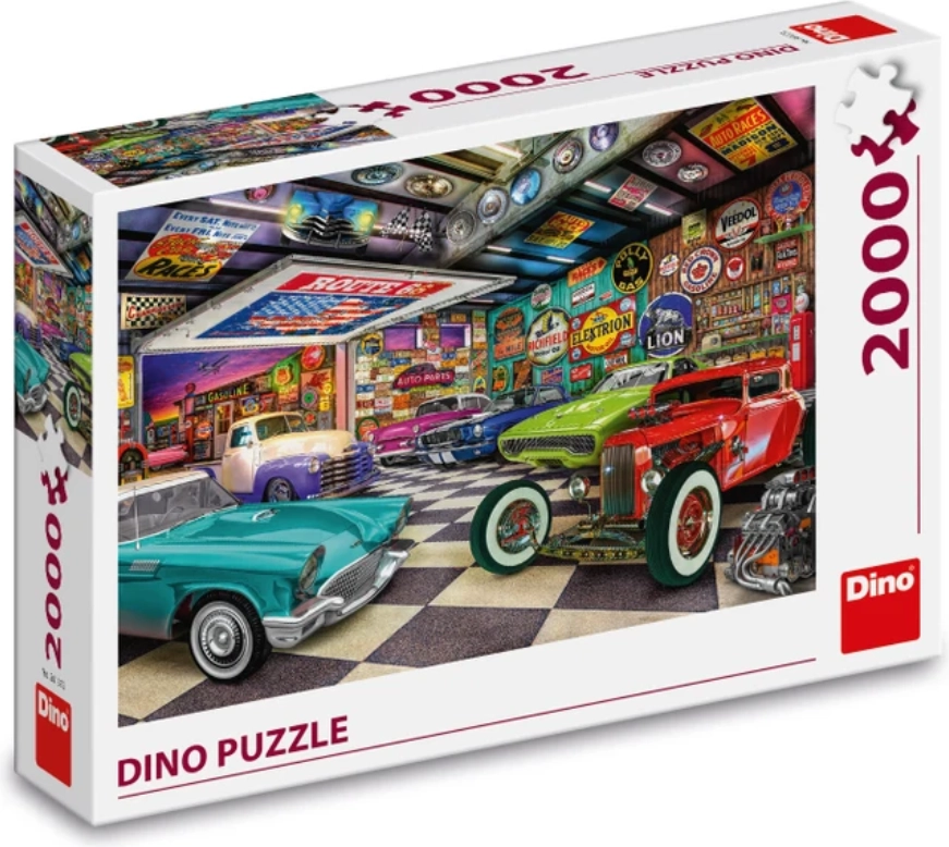 Acest puzzle din carton de calitate, marca Dino, aduce o scenă detaliată dintr-un garaj retro, dominată de automobile clasice și reclame autentice de epocă. Numărul mare de piese garantează o experiență de asamblare intensă și captivantă, în care îți vei exersa concentrarea, răbdarea și atenția la detalii.