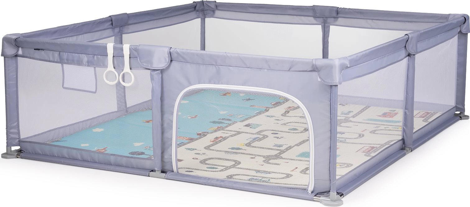 Țarcul CHIPOLINO Laguna Grey este conceput pentru joaca zilnică și momentele de odihnă. Datorită suprafeței spațioase, copiii au suficient loc pentru târât, explorare și jocuri, în timp ce părinții apreciază vizibilitatea facilă prin plasa respirabilă. Ușița laterală cu fermoar permite copilului să intre și să iasă în siguranță, în mod independent.